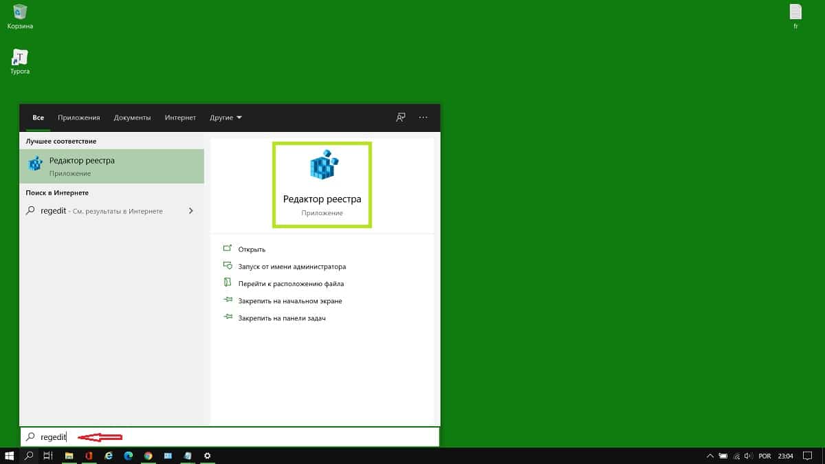 1. Откройте Поиск; 2. Наберите regedit и щелкните верхний результат, чтобы запустить редактор реестра;