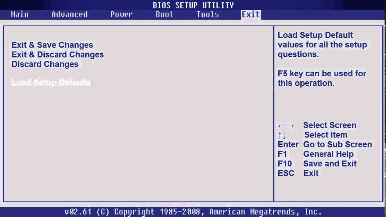 Чтобы вернуть BIOS Setup настройки по дефолту, используя его собственную опцию, нужно: