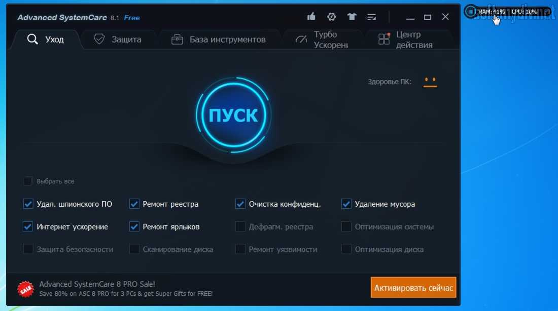 Утилита приводит компьютер в порядок комплексно. Advanced System Care распространяется бесплатно, скачать можно на сайте разработчика.