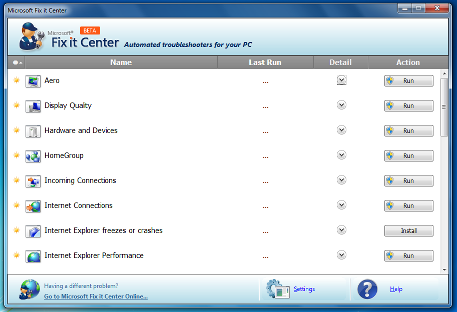 ПО создано специально для работы с Windows. Скачивается и устанавливается утилита Microsoft Fix It бесплатно. В окне утилиты пользователю предлагается список средств системы, для каждого из которых можно запустить проверку на ошибки с последующим исправлением.