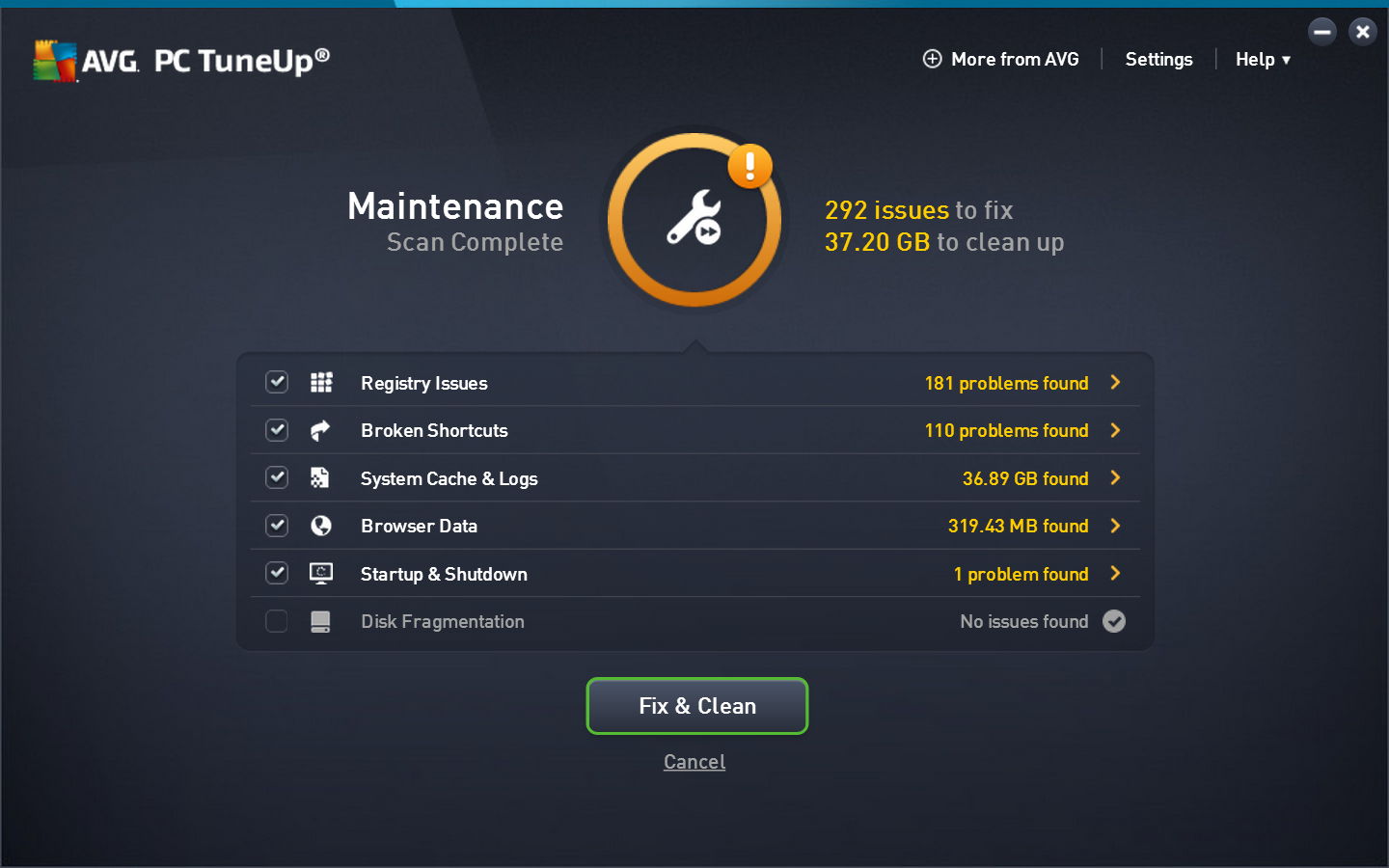 Для использования возможностей AVG PC Tune Up, достаточно установить ее и поэтапно запускать проверку, устранение ошибок.