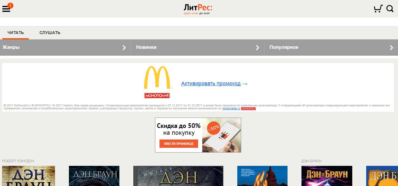 Книг для онлайн чтения бесплатно здесь немного, однако они часто обновляются. Отличный ресурс, чтобы книги онлайн читать на телефоне бесплатно. Много платного контента.