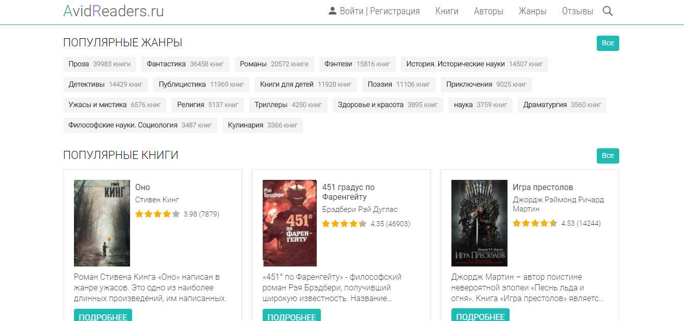 Любитель книг, который еще не определился что почитать, может воспользоваться категориями жанров на свой вкус. К каждой книге представлена аннотация, которая кратко описывает содержание и помогает определиться с выбором.