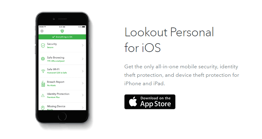 Lookout Personal для iOS предоставляет бесплатным пользователям функцию поиска обновлений приложений, базовый мониторинг утечки данных и инструменты обнаружения пропавшего устройства. Lookout предоставляет инструмент управления системой, который присылает уведомления в случае наличия обновлений для системы, однако данный инструмент пригодится лишь тем, кто намеренно игнорирует постоянные уведомления об обновлении системы iOS