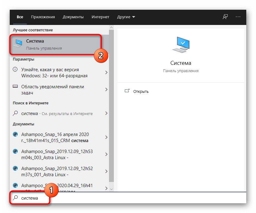 - Для проверки переменных среды перейдите к разделу «Система» в «Панели управления», отыскав ее через поиск в «Пуске».