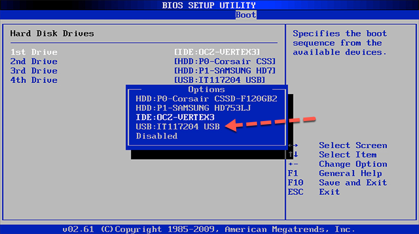 Когда внешний диск включается и визуально работает, но ОС его не видит, проверьте, видит ли BIOS USB внешний жёсткий диск или нет. Перезагрузите компьютер, войдите в BIOS/UEFI и посмотрите, отображается ли устройство в нём. Вместо посещения настроек BIOS можете вызвать Boot-меню (см. руководство к вашему ноутбуку или материнской плате). Обычно нужно зажать кнопку из ряда F9 — F12 в момент появления заставки BIOS после самотестирования оборудования. На ноутбуке и нетбуке – вместе с клавишей Fn. Убедитесь, что в BIOS включен USB-контроллер и поддержка USB-дисков. Если устройство определяется, проблема, скорее всего, программная/логическая. Если нет – физическая.