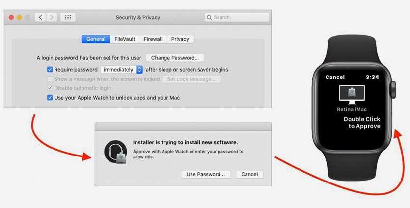Как работает фишка: надеваем на руку Apple Watch и начинаем работу с Mac. Когда появится необходимость ввода пароля администратора, увидите соответствующее уведомление на часах.