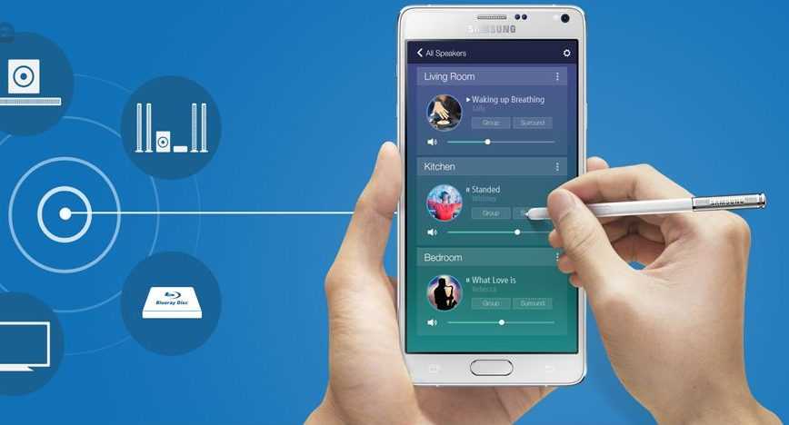 Комплект оборудования может быть разным, состоящим из коммутатора, настенных блоков управления в каждую комнату, непосредственно звуковых колонок и телевизоров, но стоит такой набор довольно дорого. Или не очень дорогой – состоящий из одного усилителя с возможностью подключения до 3 комнат и управлением по смартфону. Также есть экосистемы наподобие Samsung. Некоторая техника этого производителя поддерживает функцию мультирума и объединяется с помощью приложения Samsung Multiroom App на смартфоне. Достаточно иметь WiFi-роутер с доступом в интернет, соответствующую технику самсунг и собственно мобильное устройство.