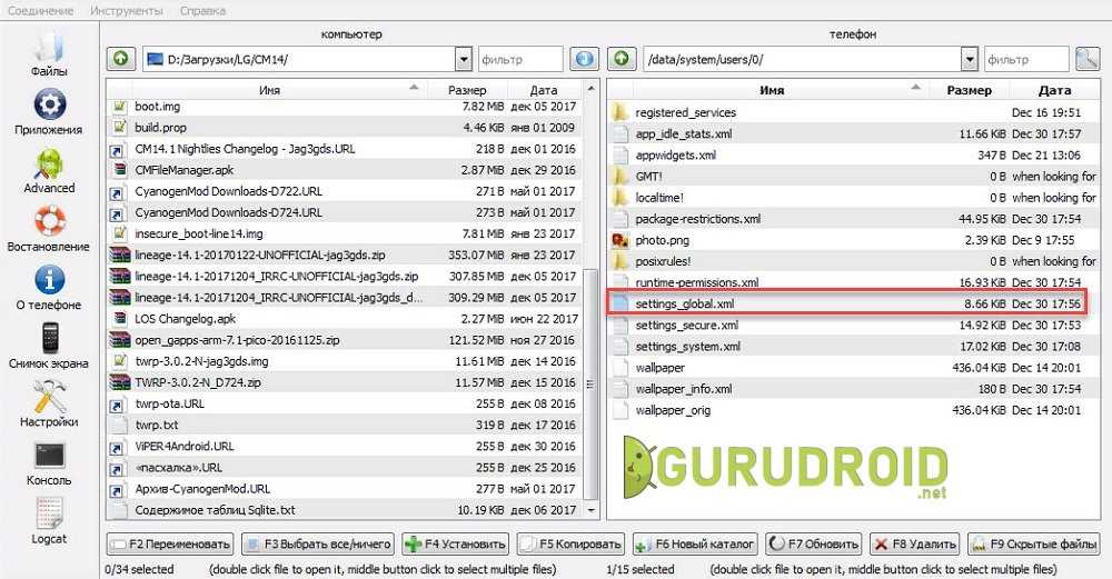 Возвращаемся в программу и перемещаем отредактированный файл «settings.db» обратно в память смартфона. Подтверждаем замену и отключаем устройство от компьютера. После завершения процедуры телефон можно запустить и убедиться, что на нём активирована отладка по USB.