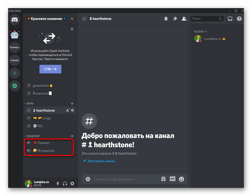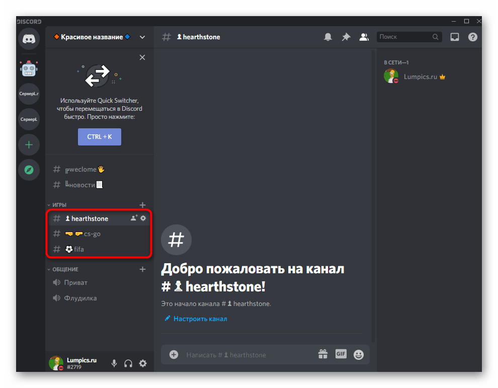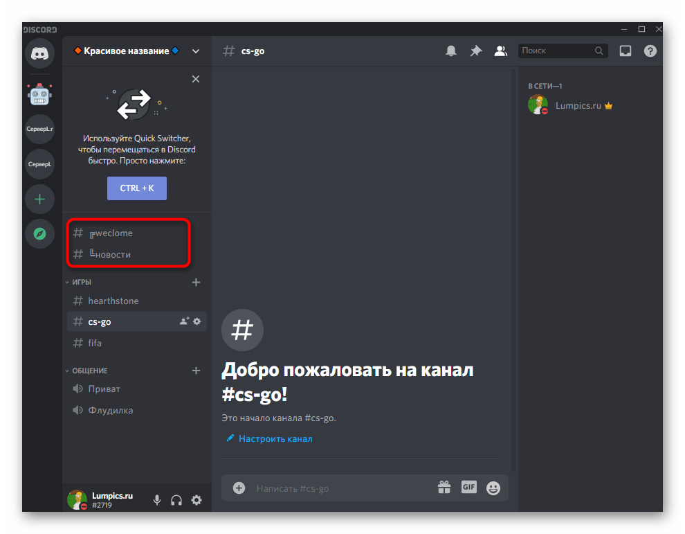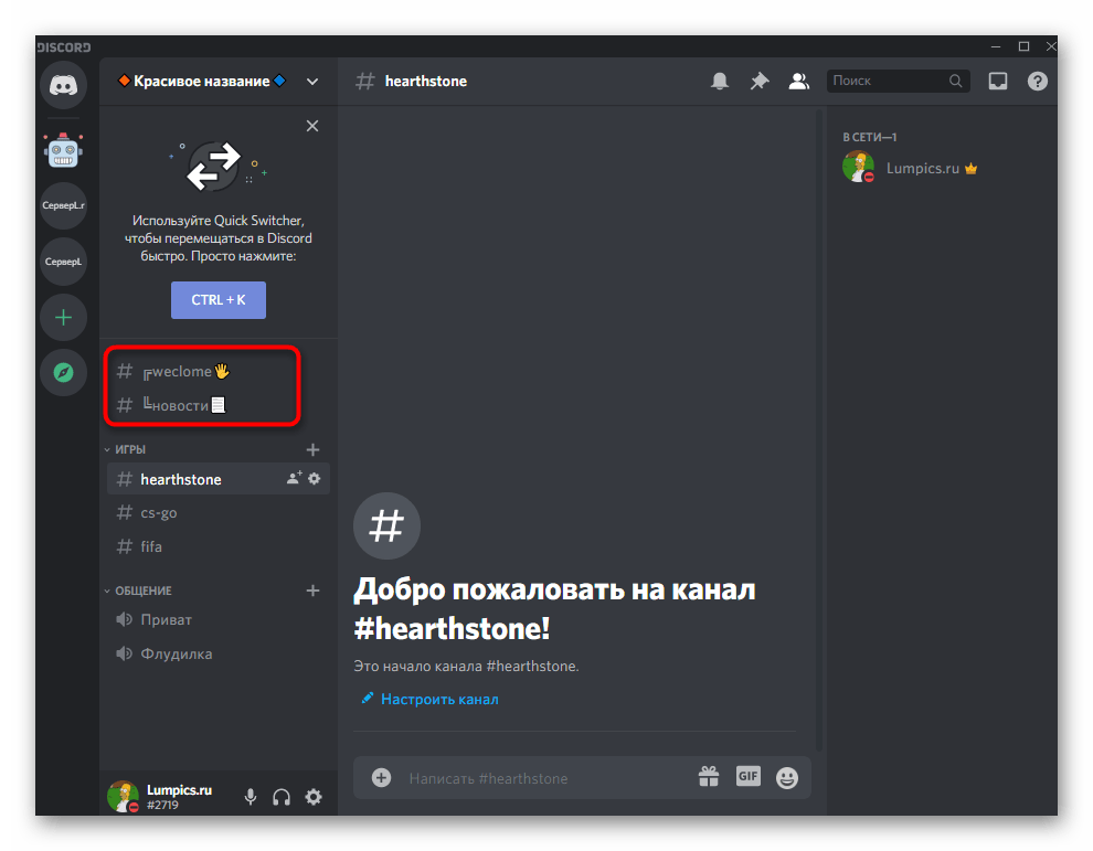 Имена каналов тоже можно оставить обычными, но иногда отличный эффект придают дополнительные символы или эмодзи, которые подскажут пользователю, что за тематика у канала, или просто сделают оформление сервера лучше.