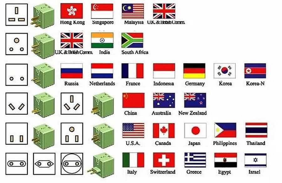 Мало того что в разных странах бытовые сети имеют разное напряжение, во многих из них розетки имеют особую форму. Перед поездкой надо узнать, какой формы розетки в стране, чтобы купить соответствующий переходник. Они, конечно, есть там, но в незнакомом месте найти может быть непросто.