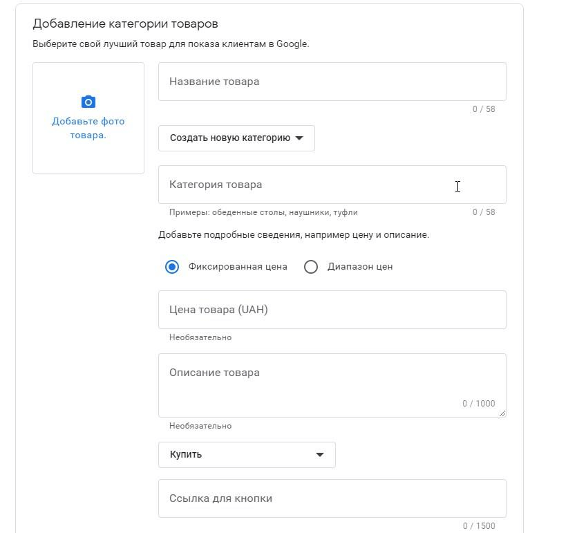 В Google Мой бизнес есть 2 отдельных раздела: «Товары» и «Услуги».