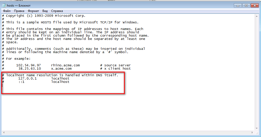 который ни в коем случае нельзя изменять. Ниже него пропишите «127.0.0.1»,