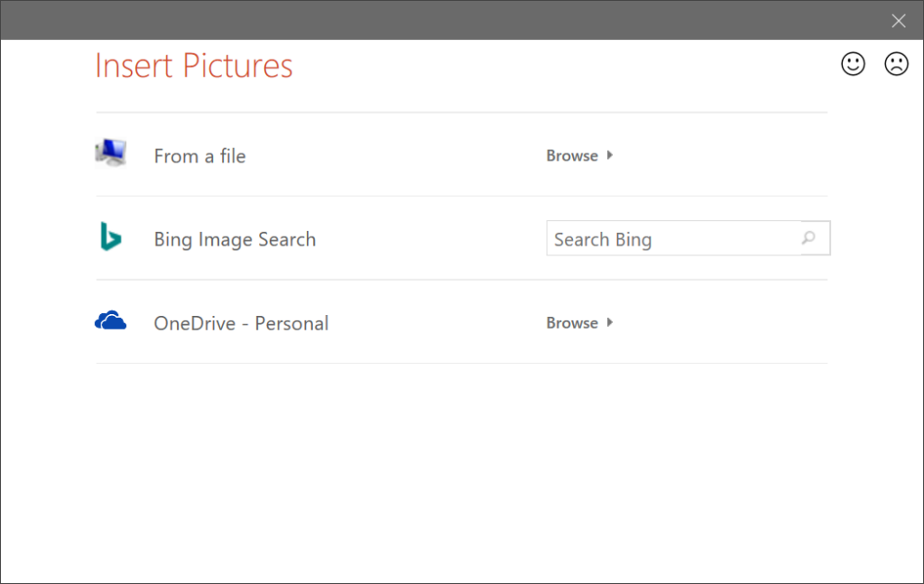 - Чтобы добавить изображение, выберите значок изображения в элементе SmartArt и выберите, следует ли вставлять изображение из файла на вашем компьютере или из онлайн-источника, такого как Bing.