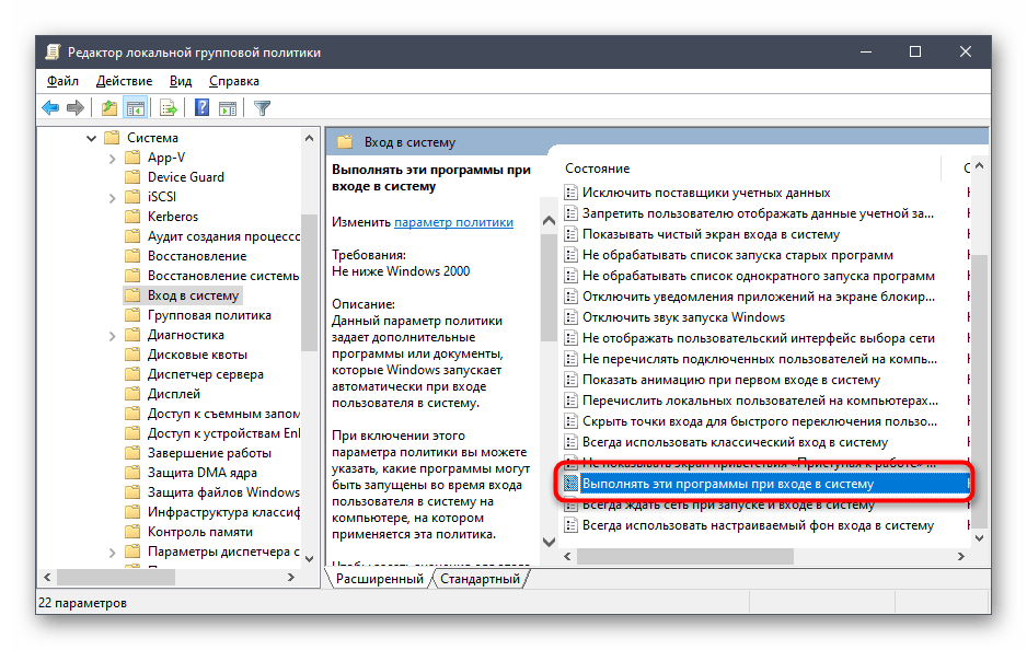 Редактирование параметров автозагрузки через редактор локальной групповой политики