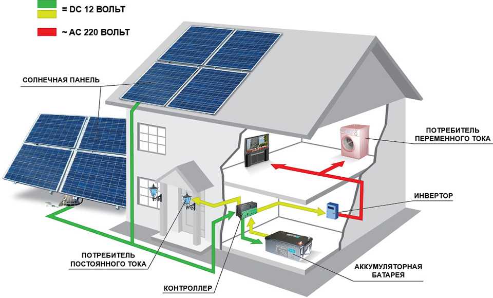 Специального преобразователя (инвертора), который позволяет трансформировать постоянный ток, вырабатываемый панелями в переменный.