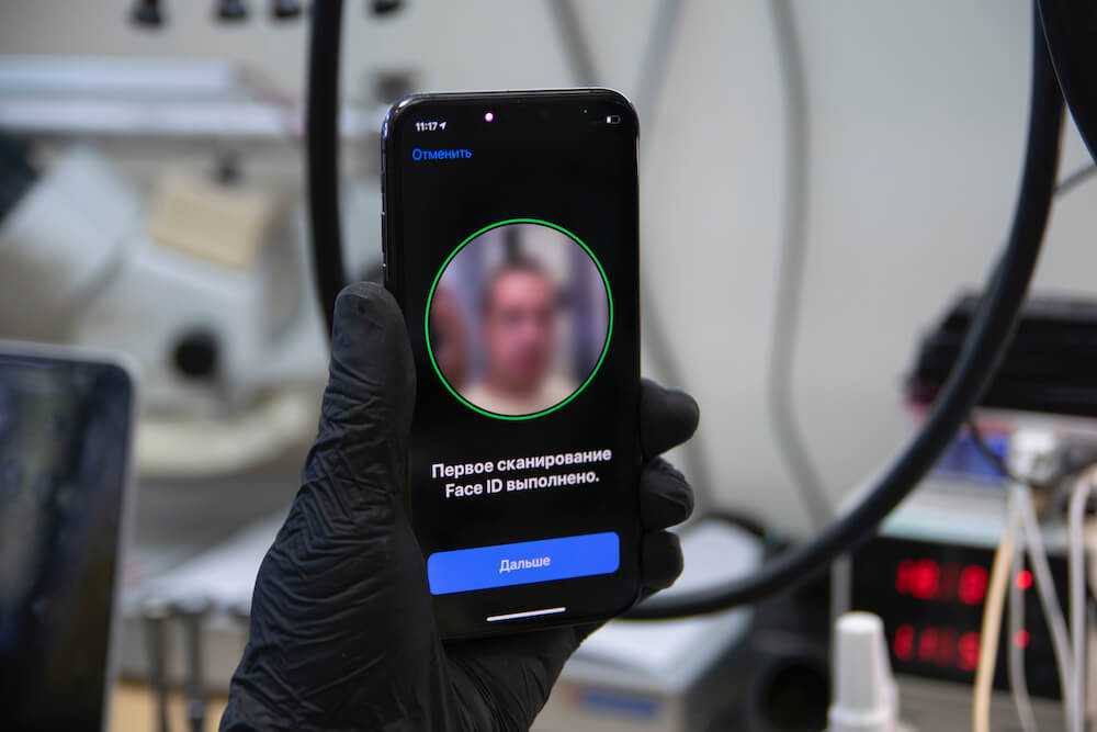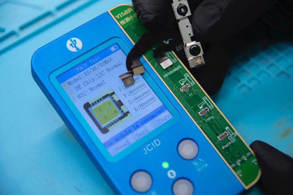 Первым делом надо локализовать проблему. Для этого инженеры проводят осмотр устройства и спрашивают владельца телефона, после чего тот перестал работать. После этого аппарат разбирается и из него извлекается модуль Face ID, который нужно проверить более основательно.