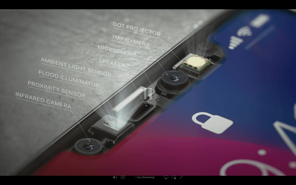 Для работы функции Фейс Айди телефон оснащён ИК-камерой, ИК-излучателем и проектором точек