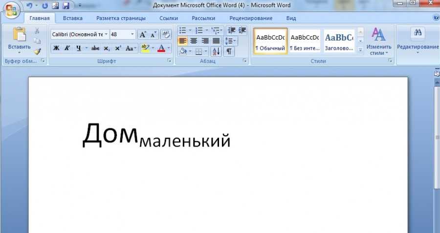 Первый этап. На новой строке теперь пишем фразу: Домбольшой. После сразу выделим второе слово «большой», а затем сразу переводим свой взгляд на верхнюю панель, где в закладке «Главная» есть блок «Шрифт», в котором просто нажимаем на иконку x2.
