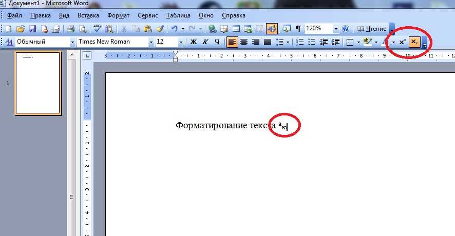 Отмена надстрочного или подстрочного форматирования