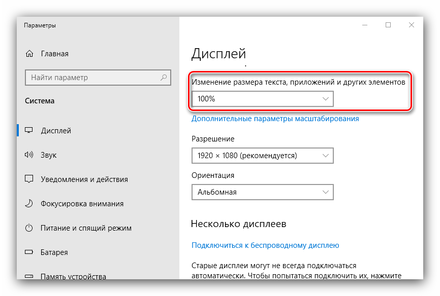 В случае когда данное изменение не принесло никакого результата, советуем отключить эту опцию, убрав указанный в строке размер масштаба.