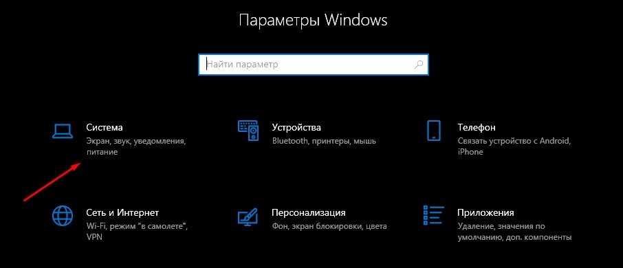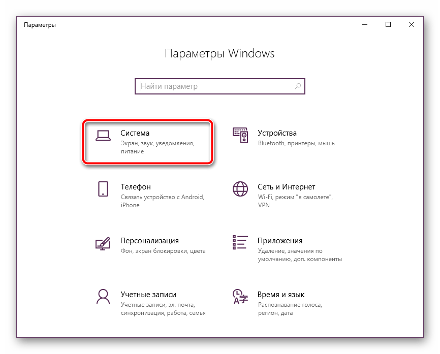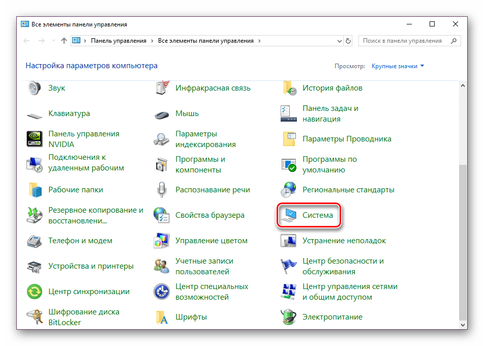 Отыщите среди всех значков элемент «Система», наведите на него курсор и кликните левой кнопкой мыши.