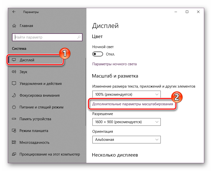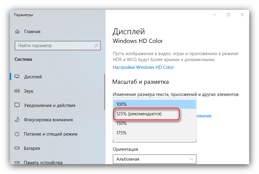 А еще, чтобы надписи в интерфейсе операционки не были «мыльными», рекомендуется установить масштаб «100 %» в разделе «Дисплей». Но подобный вид проблемы бывает связан и с другими настройками.