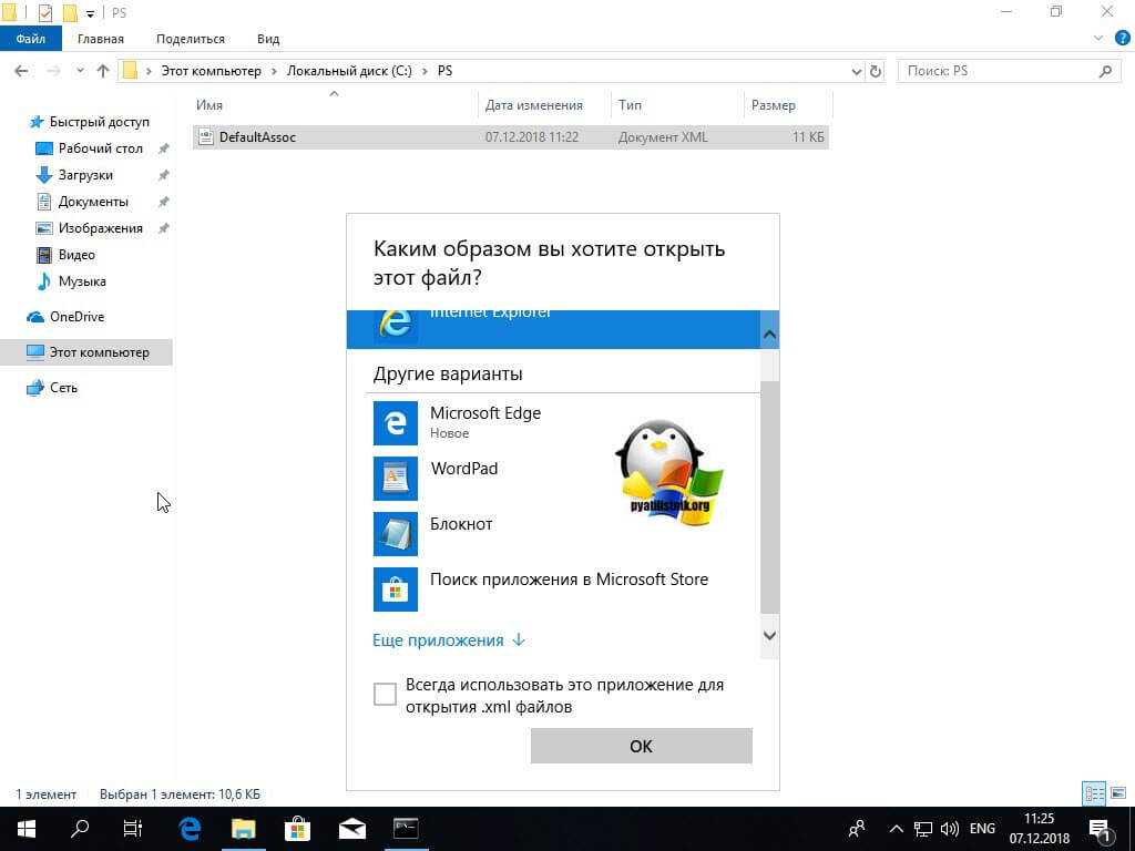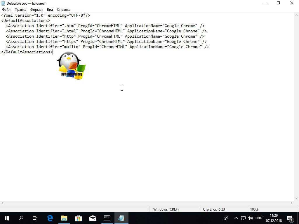 Данный конфигурационный XML мы и будем использовать в политике GPO, а так же можно применять в разворачивании операционных систем с помощью WDS или SCCM. Моей задачей выступает, чтобы все пользователи для выхода в интернет использовали Гугл хром. Что делаем, выбираем эталонный компьютер на котором вы сделаете нужные вам настройки, которые потом будем экспортировать. У меня это Windows 10 1803. Я руками выставляю, как во втором способе гугл браузером по умолчанию, таким же методом вы можете выставить почтового клиента, различные текстовые или графические редакторы. Когда вы все подготовили, то обратимся к утилите DISM.