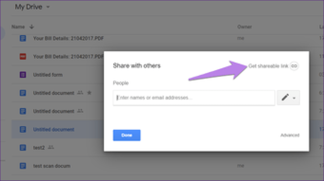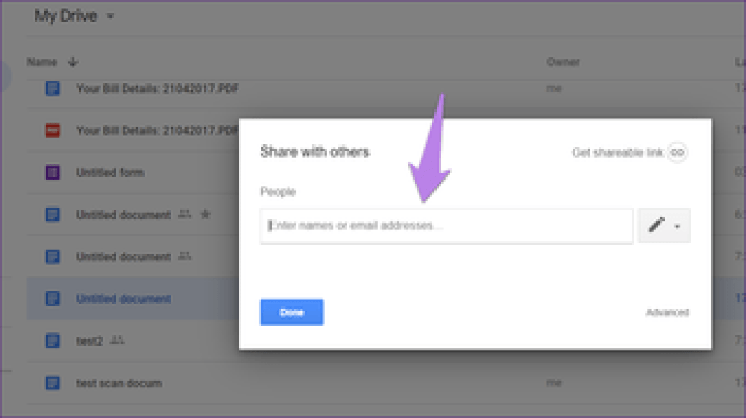 Вы увидите всплывающее окно. Снизу введите адрес электронной почты человека, чтобы поделиться им с ним. Если вы уже делитесь документом с этим человеком, вам не нужно этого делать.