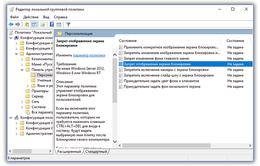 Один из наиболее быстрых способов, как отключить/убрать экран блокировки в Windows 10, заключается в вызове встроенной службы под названием «Редактор локальной групповой политики».