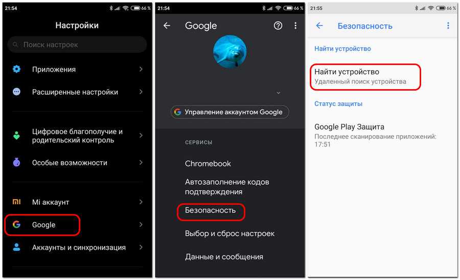 Доступ к местоположению и удалённое управление в Android изначально должны быть активны по умолчанию. Если эти функции нами намеренно не отключались ранее, всё должно работать. На упреждение ситуации с утерей Android-устройства всё же не лишним будет проверить, активен ли в настройках доступ к местоположению. И также желательно проверить, не отключено ли удалённое управление Android. В актуальных версиях операционной системы это функция «Найти устройство» в настройках безопасности аккаунта . Проверяем, чтобы она была активной.