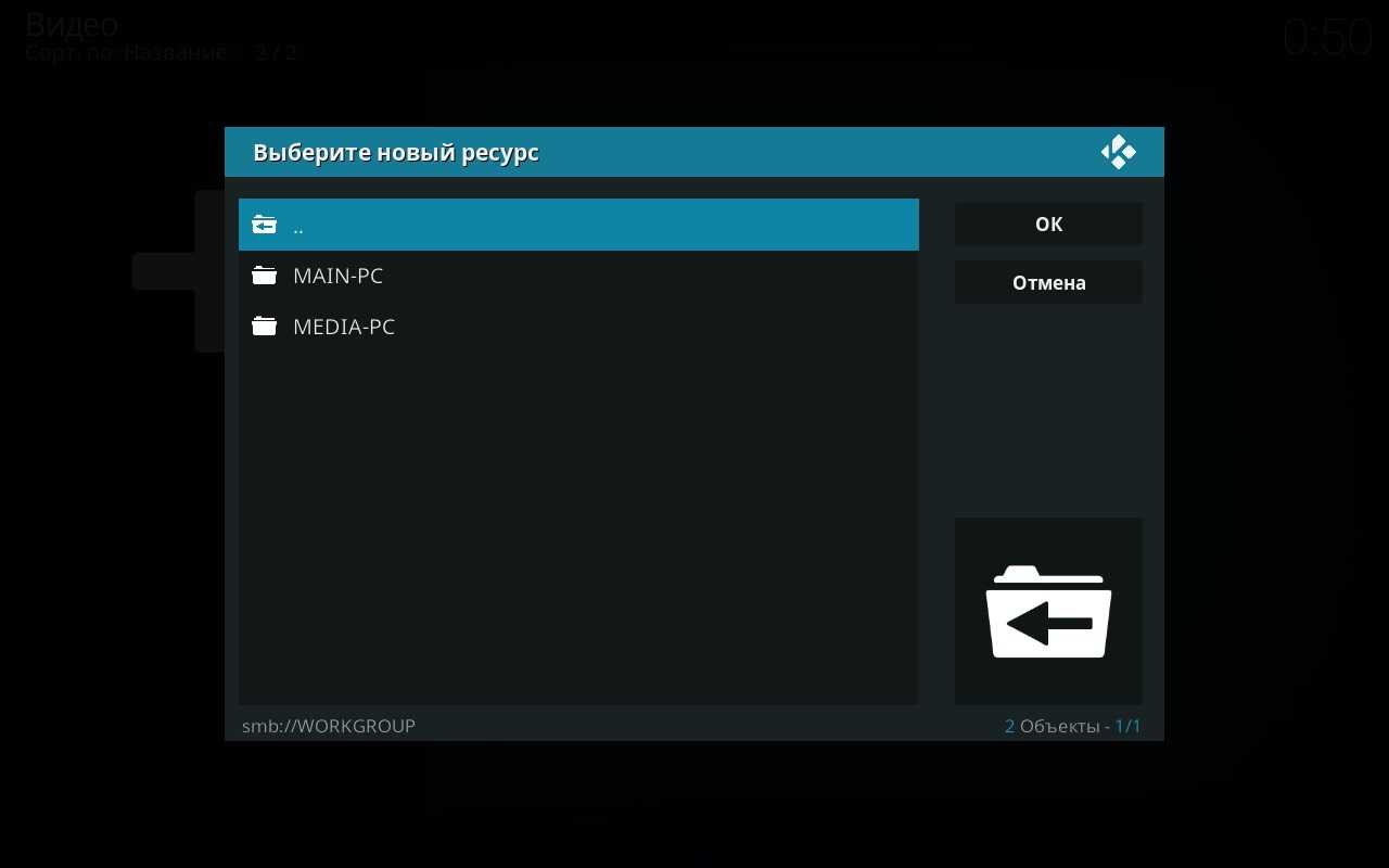 Важное примечание: если вы читали предыдущий выпуск и настроили себе дома ручную маршрутизацию, то я рекомендую в адресе к источнику название компьютера (в моем случае MAIN-PC) заменить на его сетевой адрес. И путь у нас будет выглядеть вот так smb://192.168.0.102/D/Videos/Фильмы