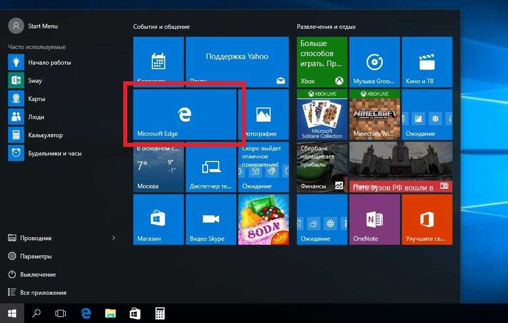 Чтобы изменить месторасположение плитки, достаточно перетащить ее в любую область начального экрана. В последней версии ОС Windows 10 Pro все плитки делятся на группы, которые можно назвать определенным именем. Мы перенесем ссылку на браузер Microsoft Edge из одной группы в другую. Сейчас она находится в группе «События и общение».