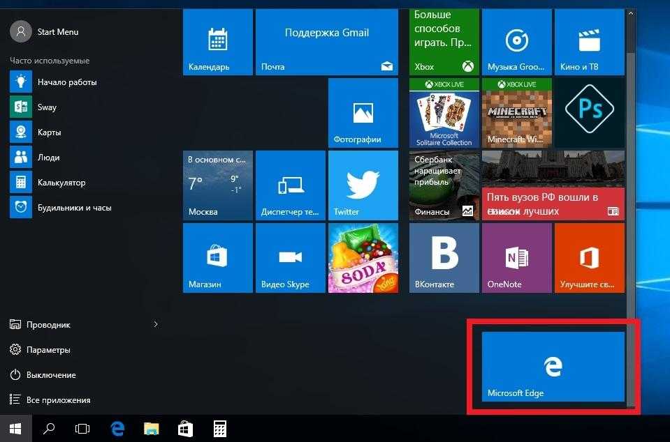 Меню «Пуск» в Windows 10