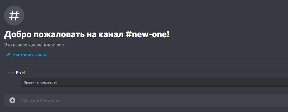 Не обязательный, но важный вариант украшения сервера в Discord, лишь частично связанный с оформлением и скорее предназначенный для эффектной встречи новичков. Текст настраивается на канале и закрепляется администраторами в качестве своеобразного приветствия (желательно заранее настроить роли и заблокировать возможность писать в текстовом чате, встречающем новых пользователей). Кроме разграничения возможностей не помешает воспользоваться специальными инструментами для раскрашивания текста и оформления своеобразных блоков.