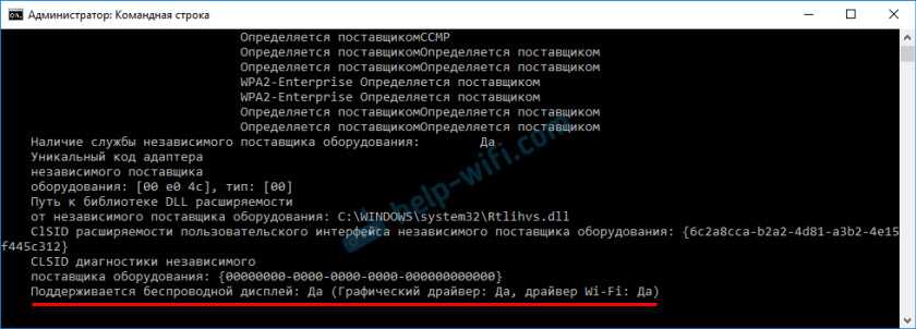 В результатах будет строчка «Поддерживается беспроводной дисплей:» С заводским (старым) Wi-Fi модулем на ноутбуке у меня такой результат: