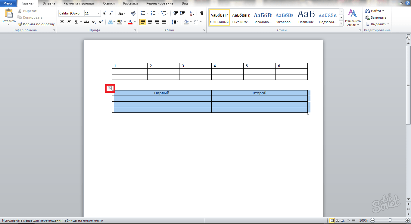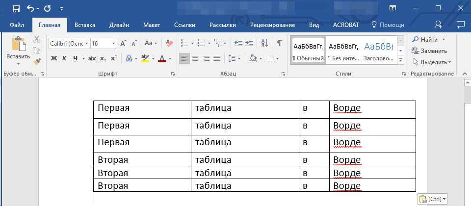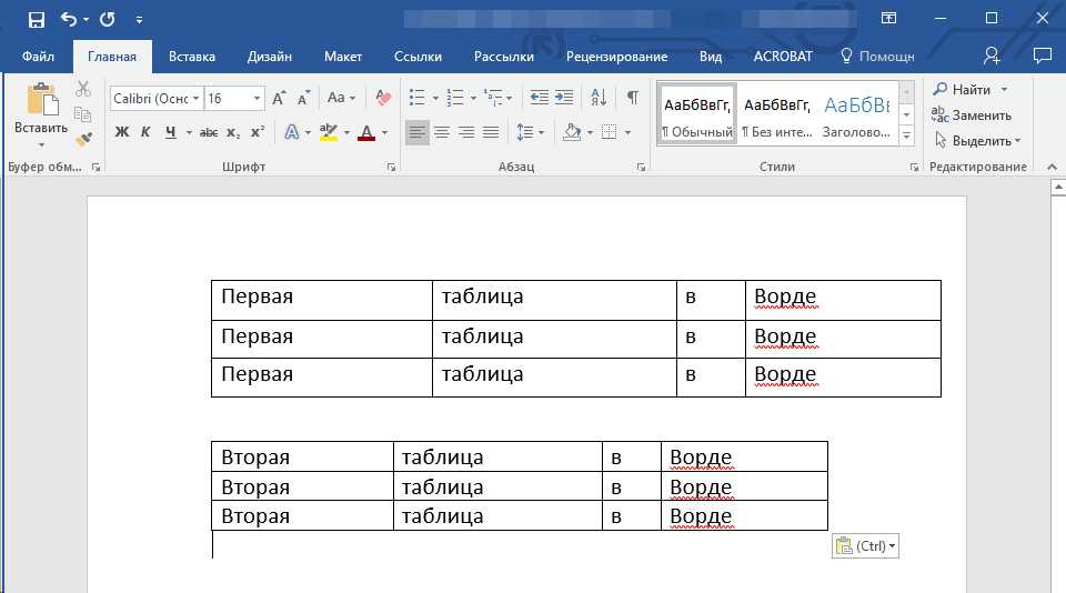 Как объединить таблицы в Ворде: способ первый