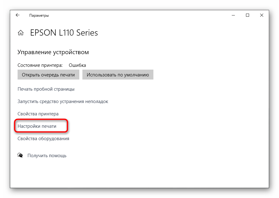 Программная чистка принтеров от компании Epson заключается в последовательном запуске средств проверки и автоматизированного исправления возможных проблем. В большинстве случаев специальное приложение отсутствует, поэтому далее этот процесс будет рассмотрен на примере штатного меню «Настройки печати».