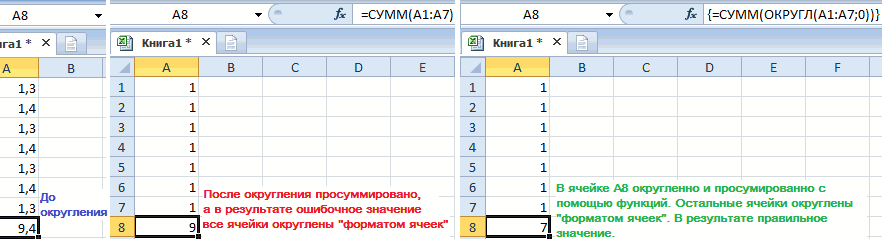 Округление числа в ячейке с помощью специальных функций, позволит в дальнейшем использовать его для расчета формул.