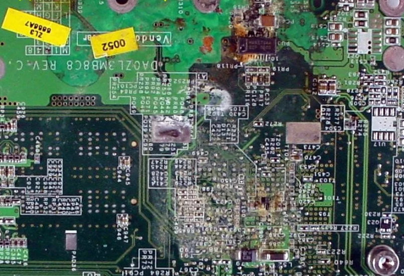 2.Окисление дорожек материнской платы.