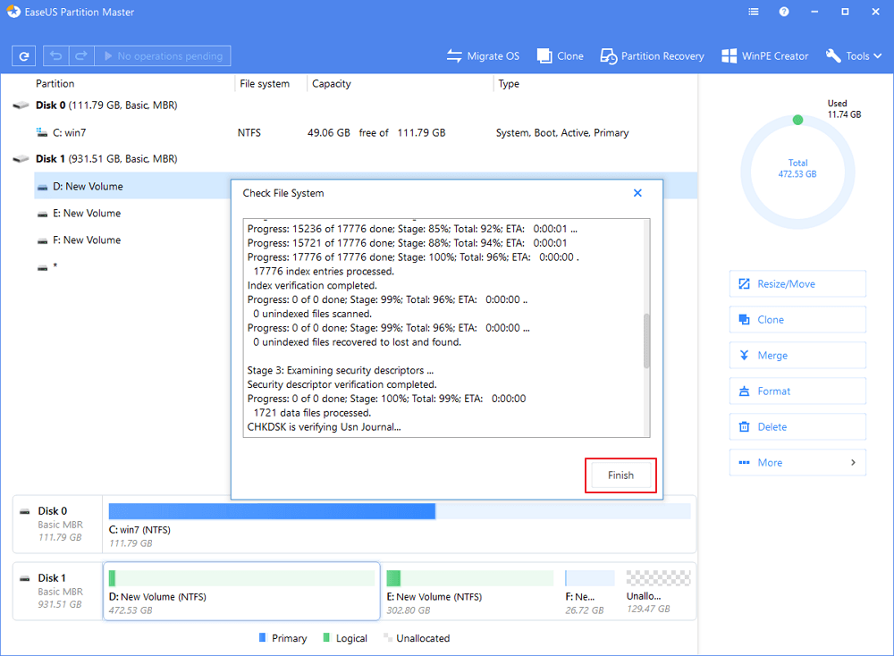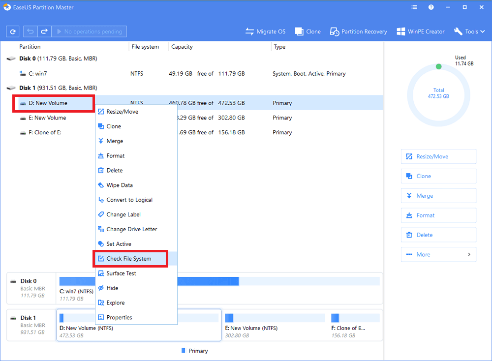Щелкнуть в «Partition Master» правой кнопкой мыши на разделе, который нужно проверить, и выбрать «Check File System» («Проверить файловую систему»).