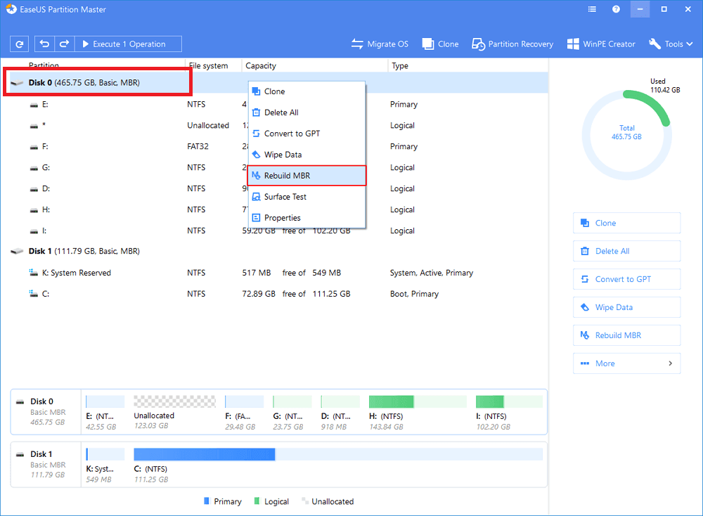 Чтобы исправить поврежденную MBR, можно воспользоваться бесплатным ПО EaseUS Partition Master.
