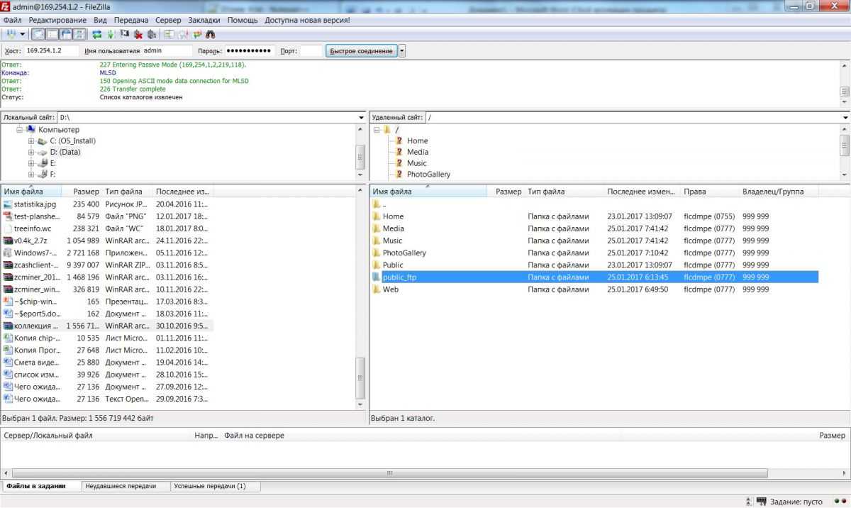 Загрузите какой-нибудь файл с вашего компьютера на ftp-сервер, чтобы протестировать соединение. Прогресс загрузки файлов отобразится на вкладке «Файлы в задании» внизу окна файлового менеджера. Чтобы получить доступ к вашему ftp-серверу по Интернету, необходимо настроить сервис DynDNS в вашем роутере.