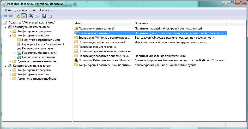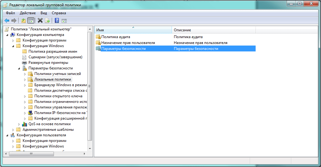 В появившемся окне «Редактор локальной групповой политики» переходим на вкладку «Конфигурация компьютера» в левой трети, затем выбираем «Конфигурация Windows».