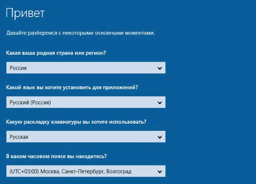 Во время переустановки Windows 10, система несколько раз будет перезагружена, а вашего вмешательства не потребуется. Через некоторое время понадобится наше участие, где мы должны будем указать Регион, Язык, Язык раскладки клавиатуры и часовой пояс.