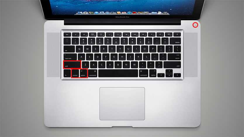 - затем нажимаем клавиши Shift-Control-Option на левой стороне клавиатуры вместе с кнопкой питания;