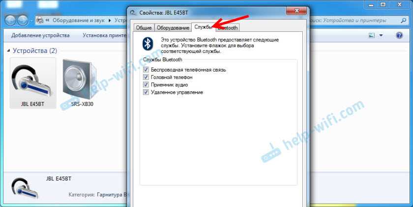 Включить, или отключить необходимые службы можно так же в свойствах Bluetooth наушников или колонки.