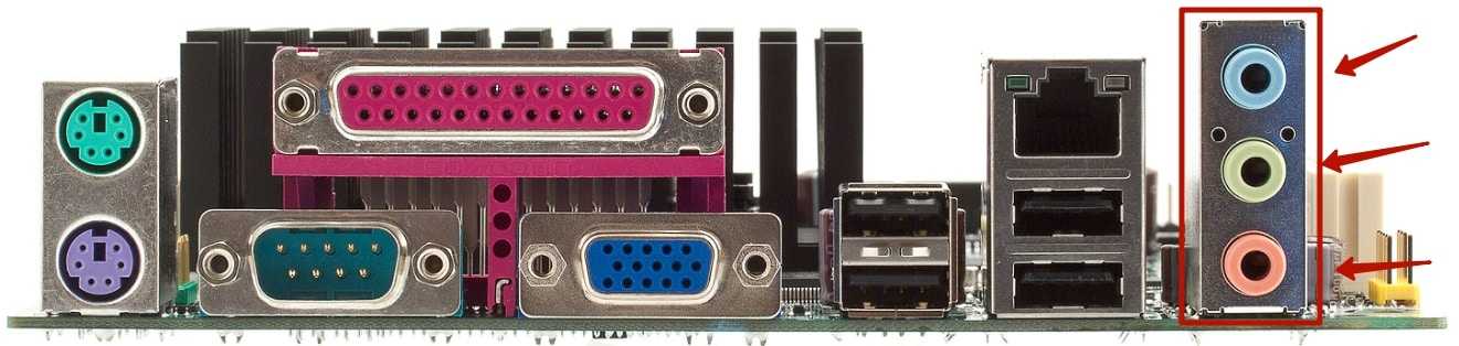 Чтобы определить, к какому порту подходит штекер, производители плат обычно помечают цветом разъем: зеленый – для наушников или колонок, розовый – для микрофона. Штекеры периферийных устройств также помечаются цветом для удобного визуального определения.