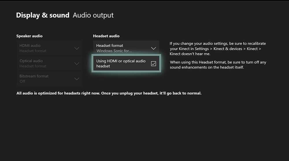 - Убедитесь, что ваш Xbox автоматически определяет ваш телевизор. Перейдите в Settings -> Display & sound и выберите Auto—detect (4K-разрешение недоступно при ручном выборе HDMI или DVI).