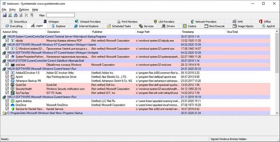 С другой стороны, если вы хотите получить полную информацию обо всем, что относится к загрузке системы, лучше всего использовать бесплатное приложение Autoruns. Данная утилита является частью пакета программ Sysinternals (принадлежащего Microsoft) и отображает так много информации, что некоторые пользователи находят ее «утомительной».